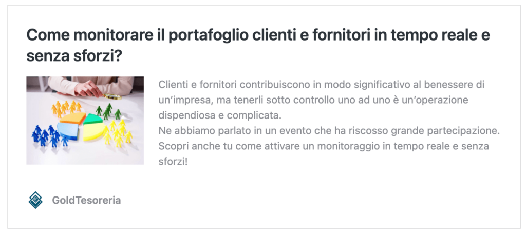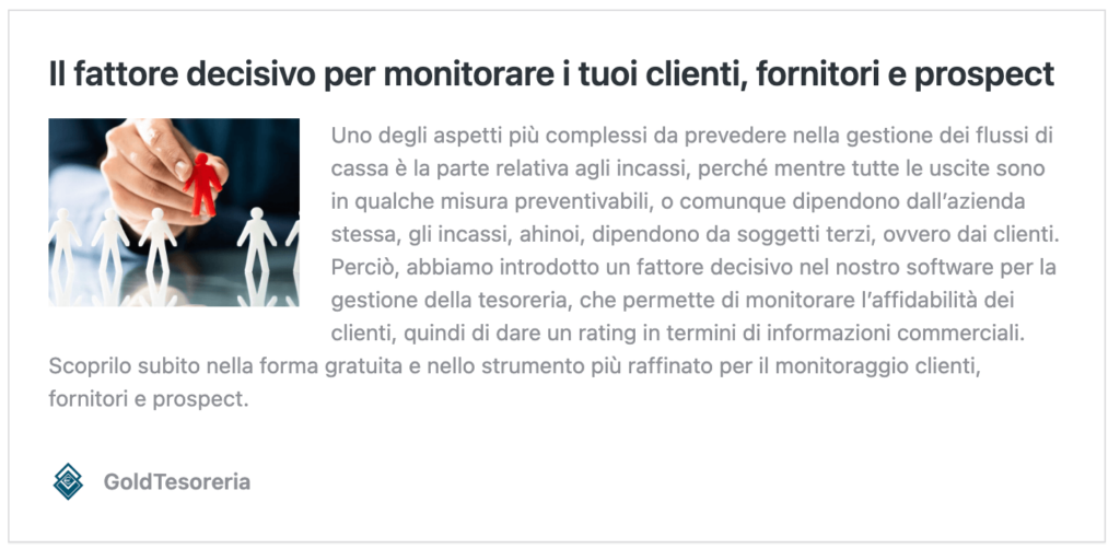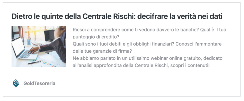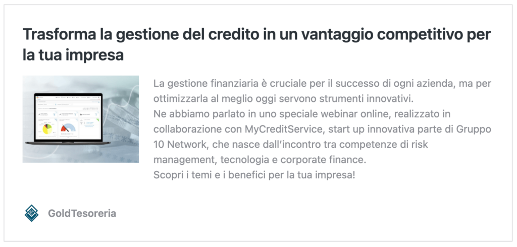 P.S. Questo articolo è dedicato a chi già possiede il software Gold, ma è utilissimo a tutte le persone che vogliono far salire di livello la gestione finanziaria aziendale.