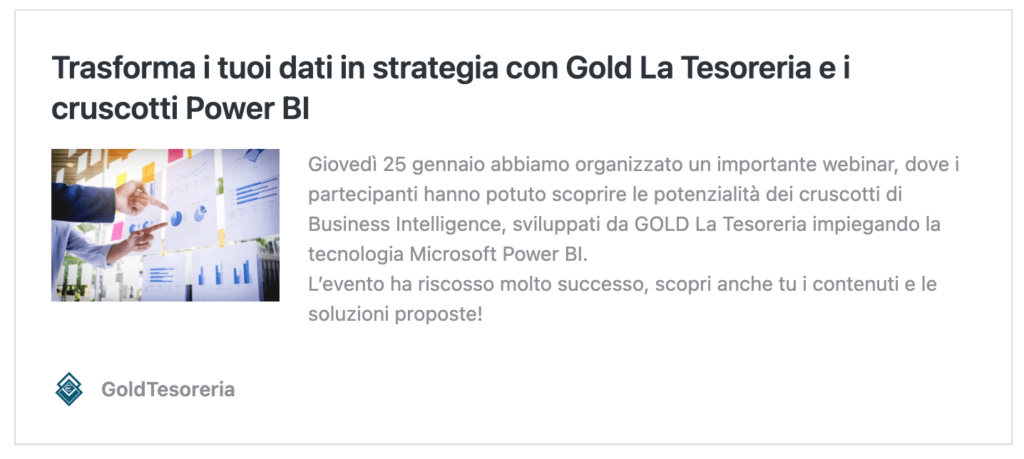 Trasforma i tuoi dati in strategia con Gold La Tesoreria e i cruscotti Gold BI