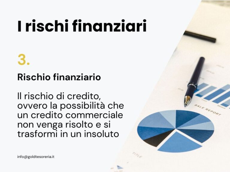 Il terzo rischio finanziario è il rischio di credito, ovvero la possibilità che un credito commerciale non venga risolto e si trasformi in un insoluto.