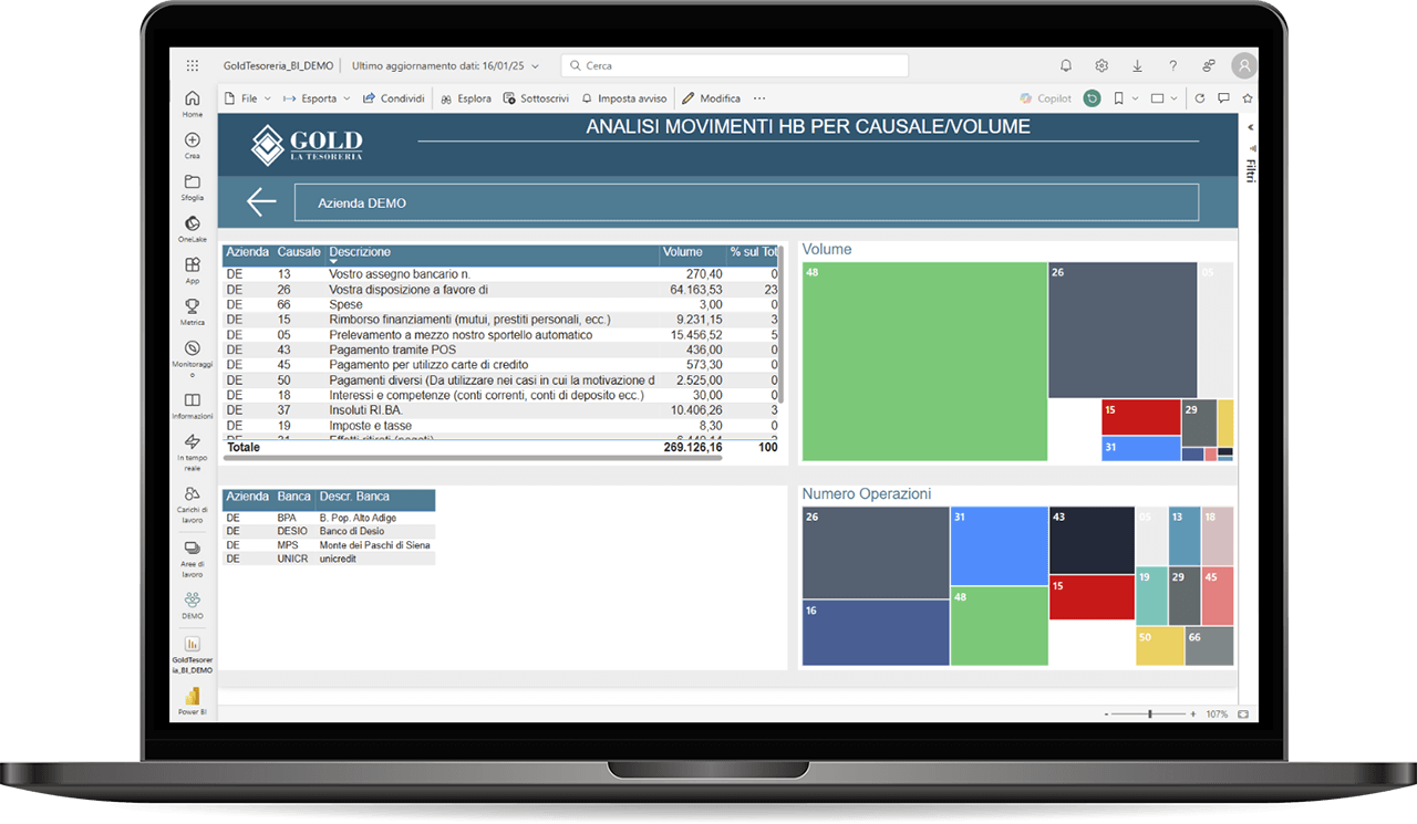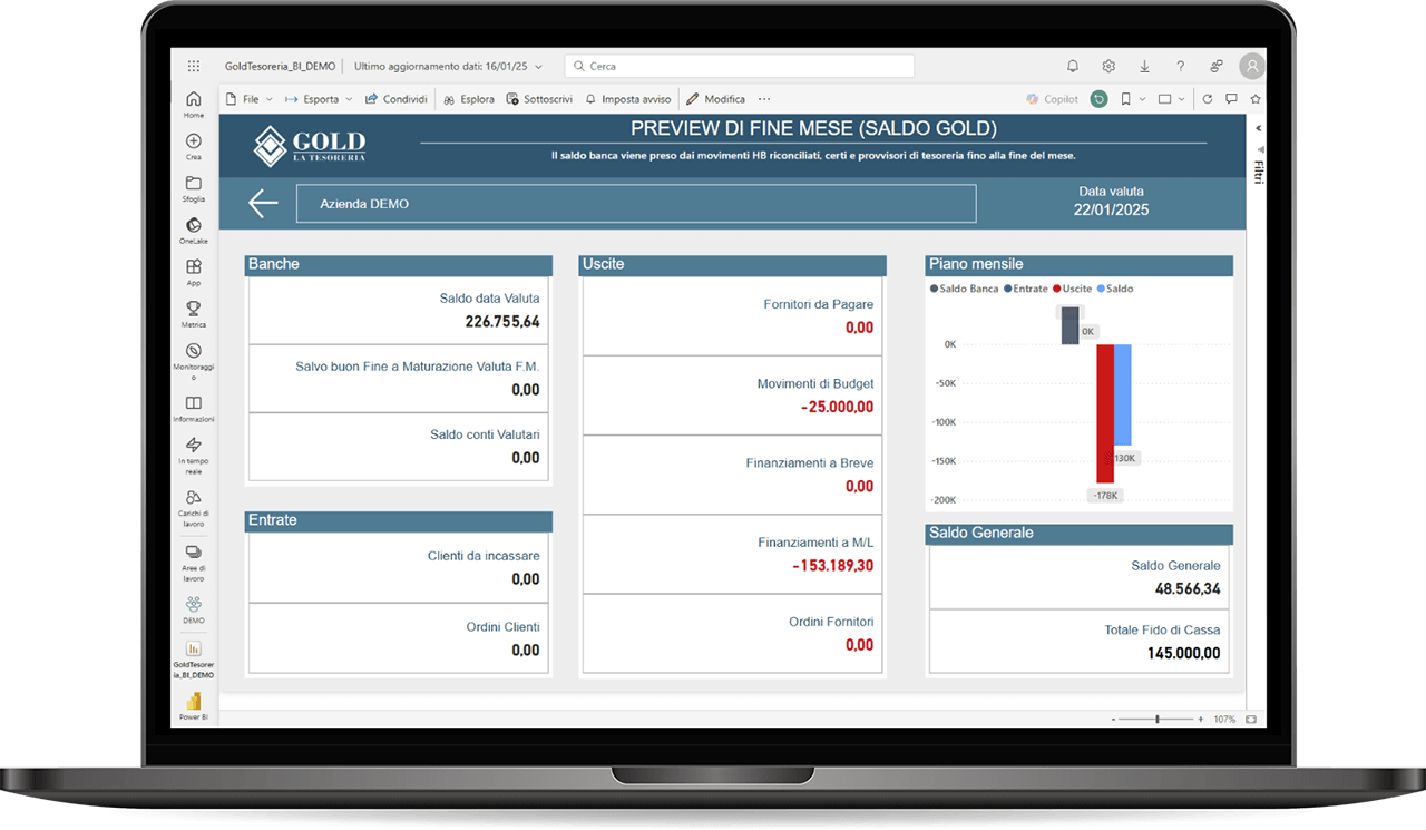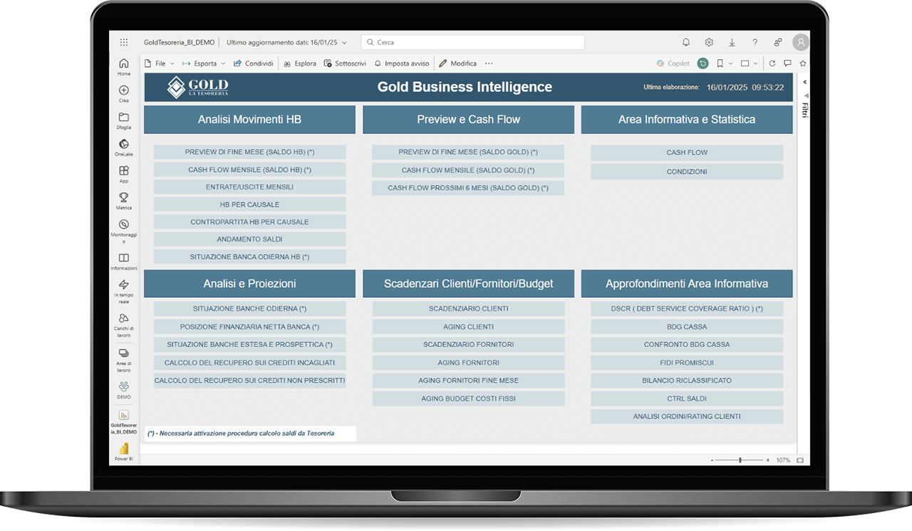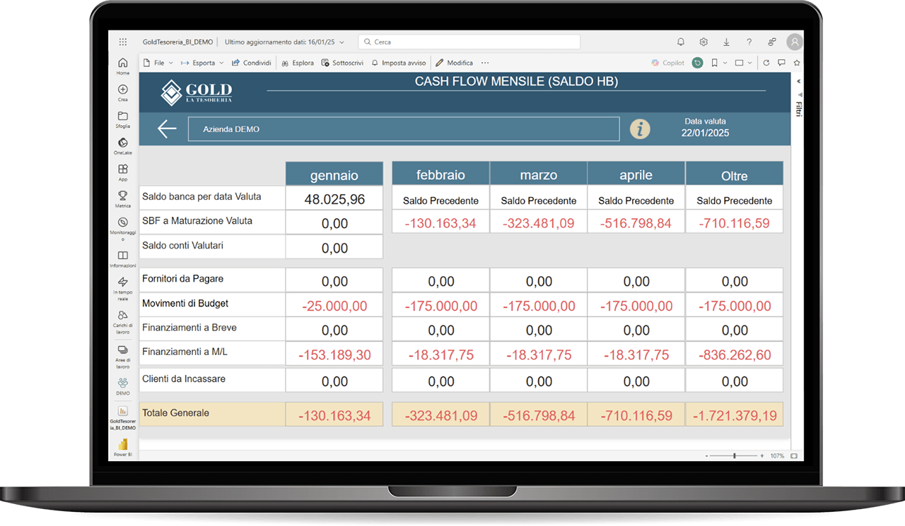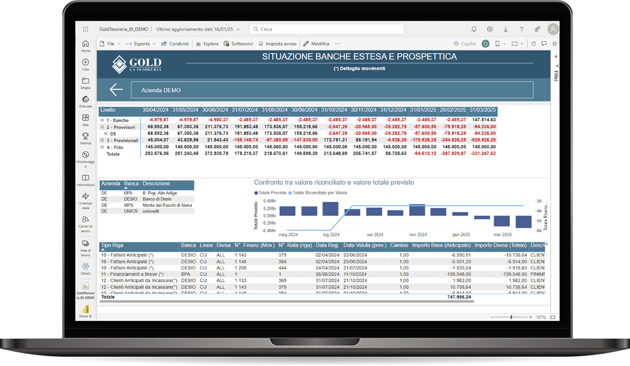 Gold La Tesoreria integra le potenzialità della Power BI di Microsoft permettendo a ogni azienda di entrare dentro ai dati con una reportistica avanzata a supporto dei CFO.